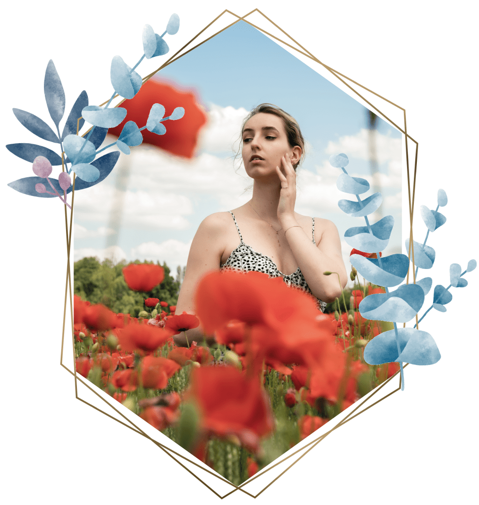 Photos dans les coquelicots de Yaëlle Fau (@yaellart) et dans le colza de Jules Dionet (@varietou)